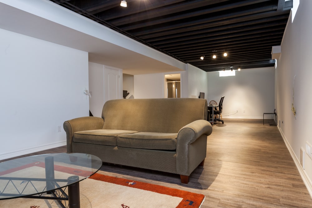 This type of ceiling is relatively easy to install, as it doesn’t require any drywall or ceiling tiles. However, exposed ceilings do carry some drawbacks: they tend to amplify sound, making your basement noisier, and they may also reduce your home’s energy efficiency.