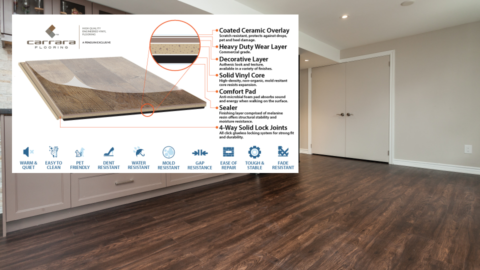 As a subterranean environment, your basement is subject to an issue that most of the home is not. Dampness. That’s why we were the first in the industry to adopt Magnesium as a wallboard ideally suited to combat mold and mildew in the basement. We’ve now moved on, leading the industry again, by utilizing wall board that provides unparalleled resistance to mold, moisture, scratches and dents. Not only that, it can even reduce the noise you hear between rooms. Our board is naturally fire resistant, GREENGUARD Indoor Air Quality Certified® and it can help reduce the noise you hear between rooms. And as always, we secure the boards to mold-free metal studs. We were also among the first to use engineered vinyl flooring for the very same reason. And now we’ve one one better, helping develop our own exclusive brand of hard-wearing, long-lasting flooring in Carrara Flooring.  For years, Contractors had been using sub-standard products to quickly assemble an inferior build . But as a basement specialist, we conform to a higher standard, and if, and when something better comes along, we’ll move to that because we refuse to accept the status quo.